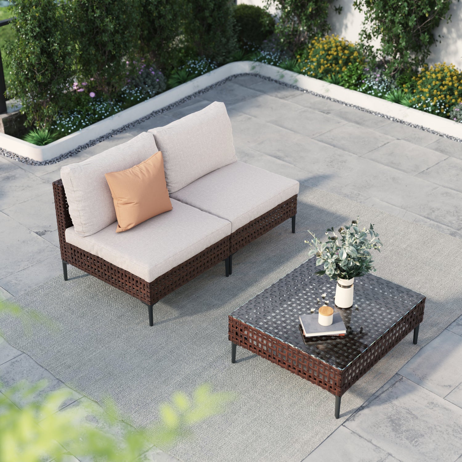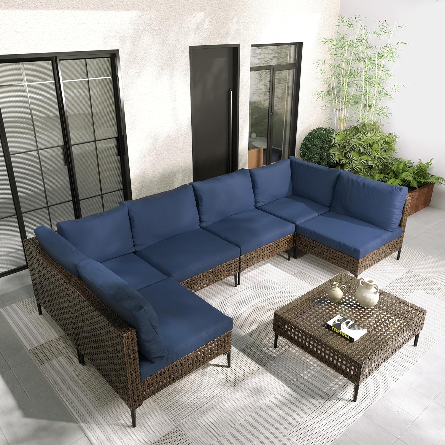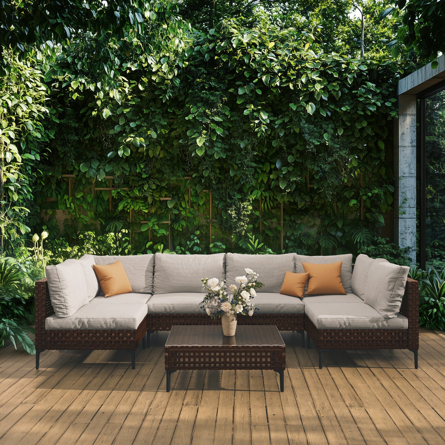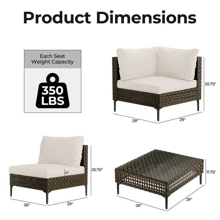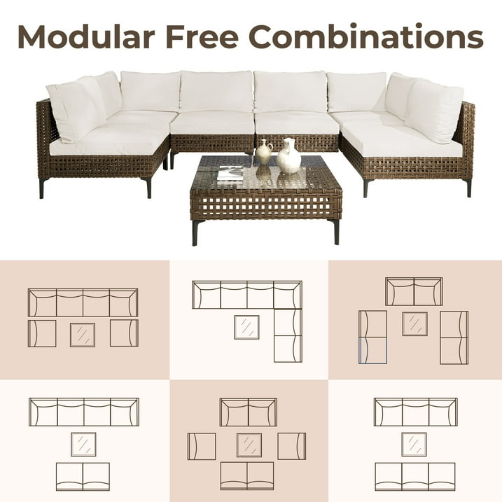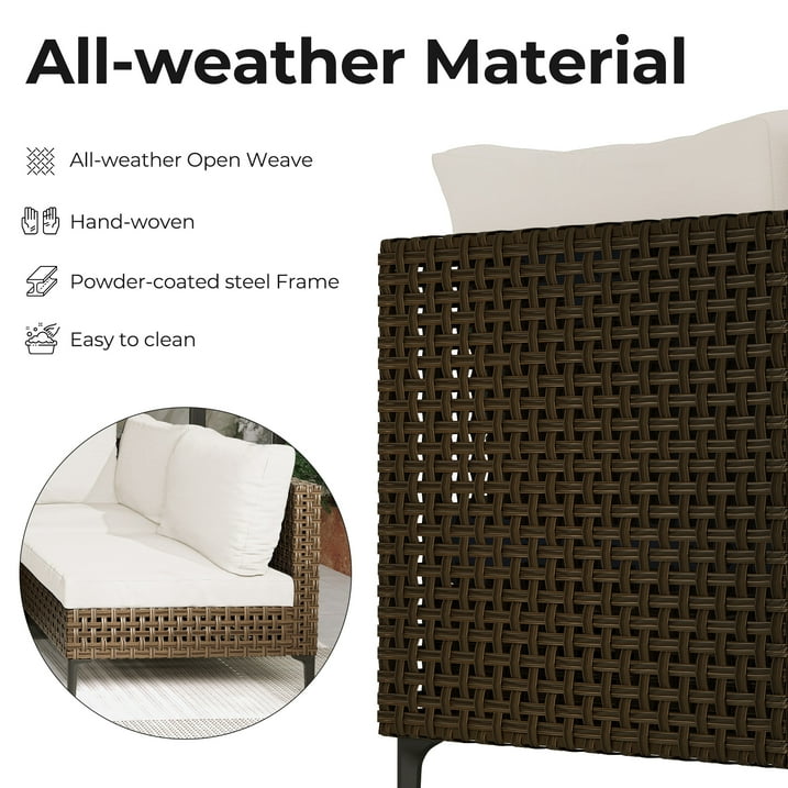 GRAND PATIO Brown Wicker Patio Furniture Set, Retro Style Outdoor Sectional Sofa, Water Resistant Thick Cushions