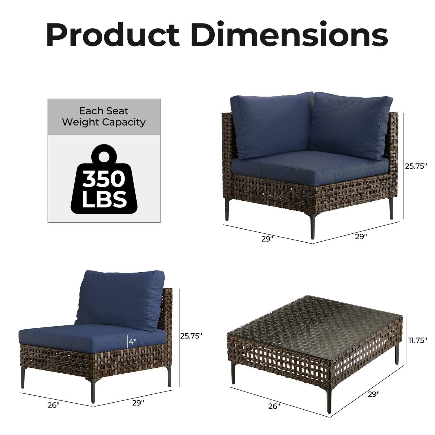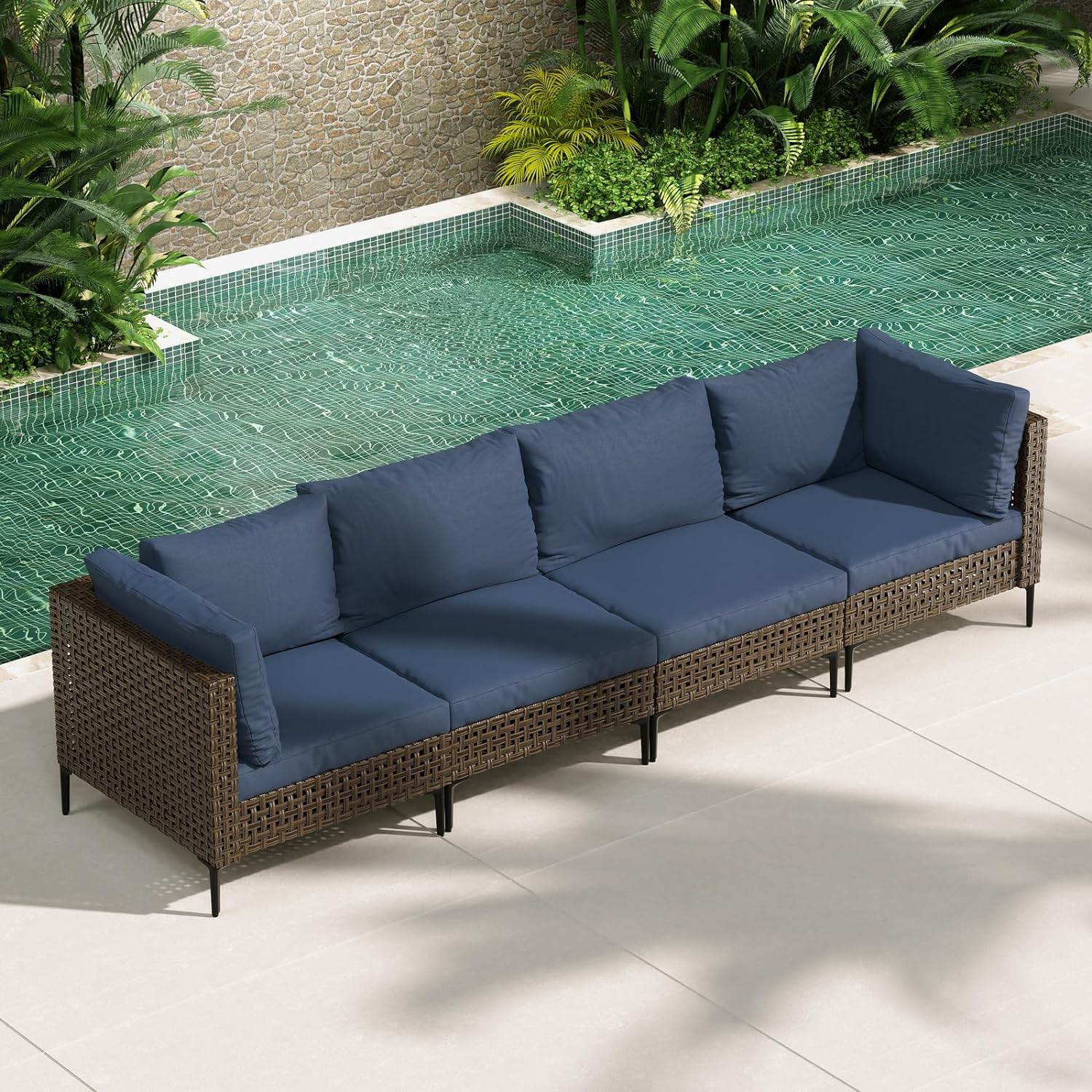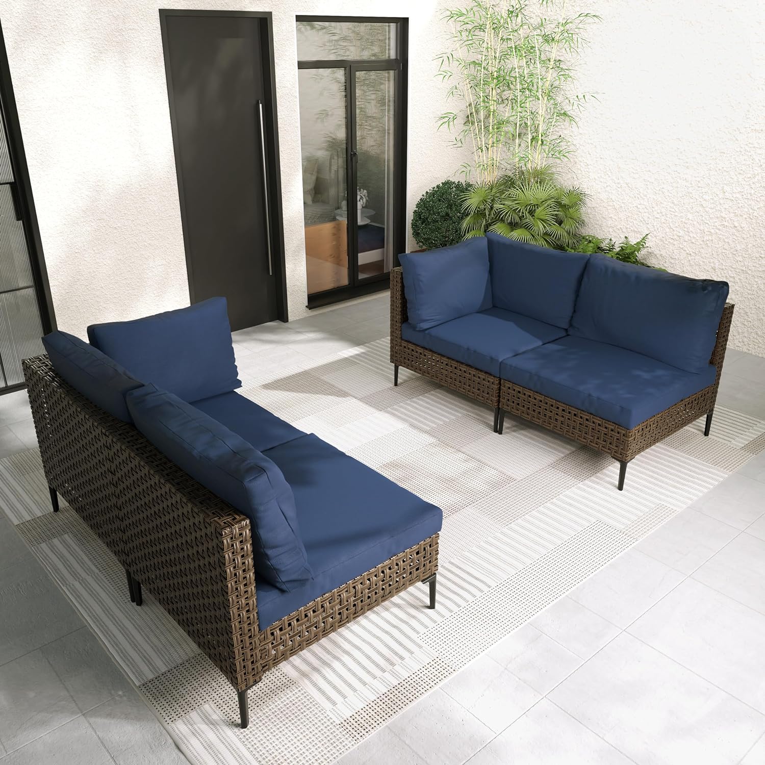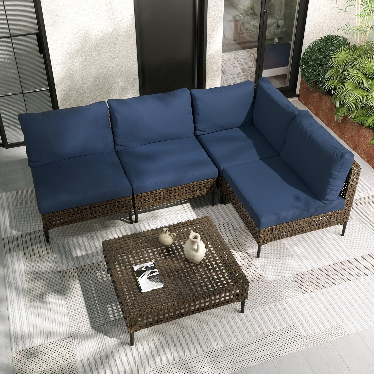 GRAND PATIO Brown Wicker Patio Furniture Set, Retro Style Outdoor Sectional Sofa, Water Resistant Thick Cushions