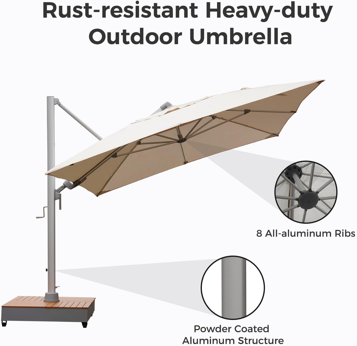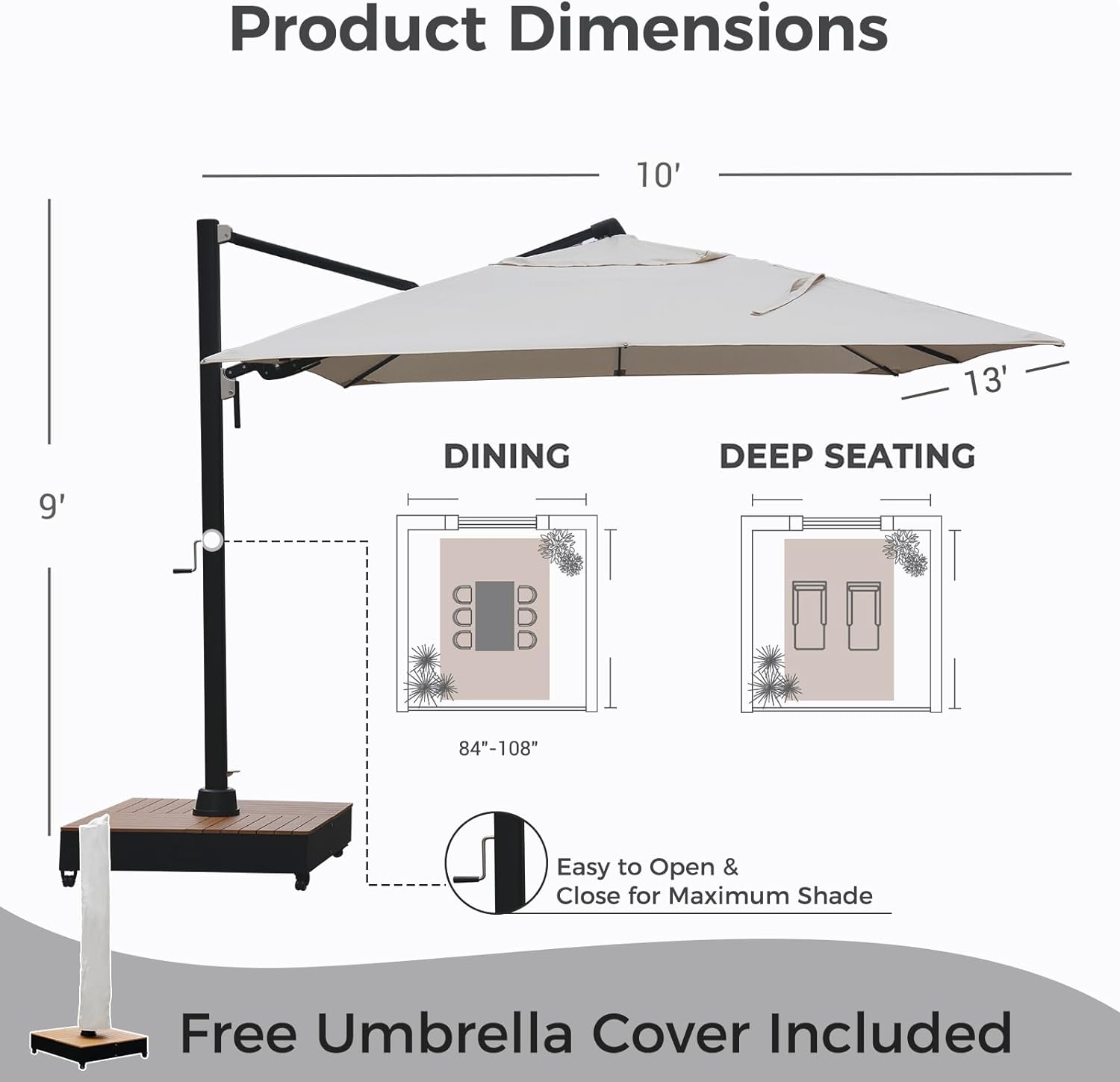 GRAND PATIO 10x13 FT Acrylic Outdoor Cantilever Aluminum Umbrella with Large Base, with Cover, 5-Year-Non-Fading