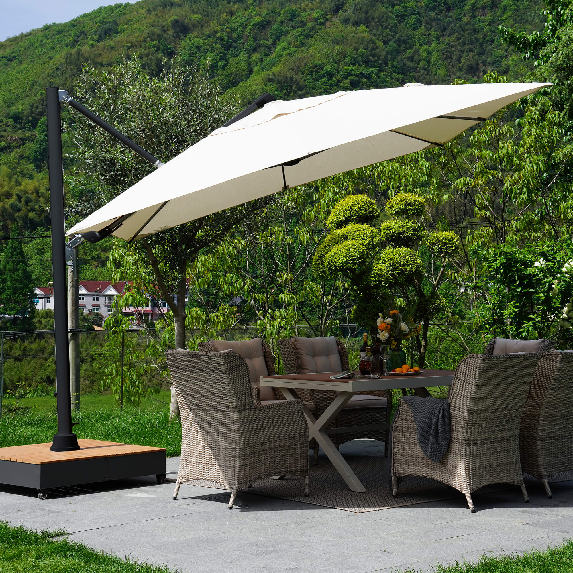 GRAND PATIO 12 FT Deluxe NAPOLI SUNBRELLA Cantilever Umbrella with Umbrella Cover