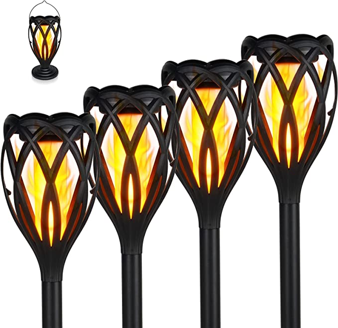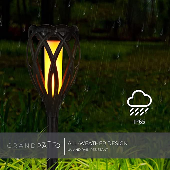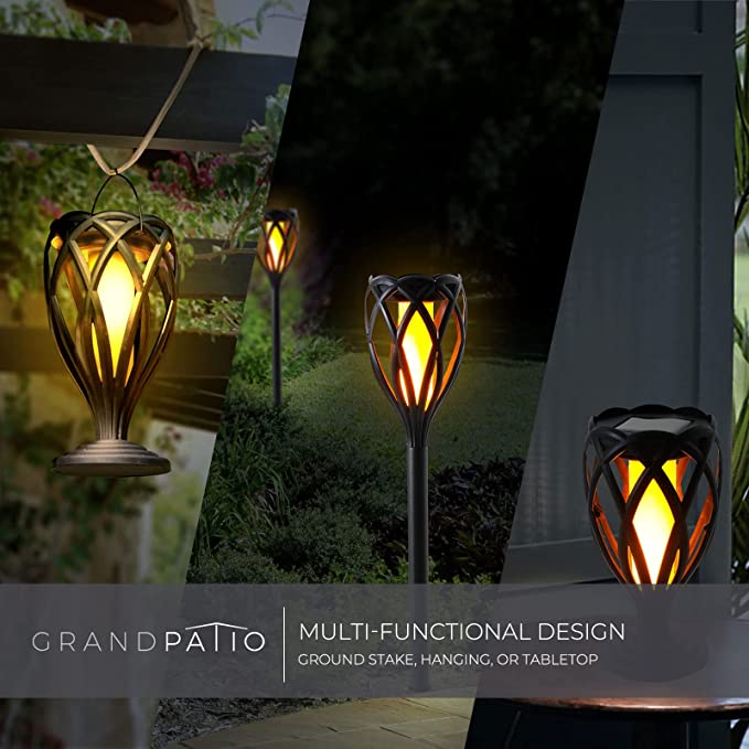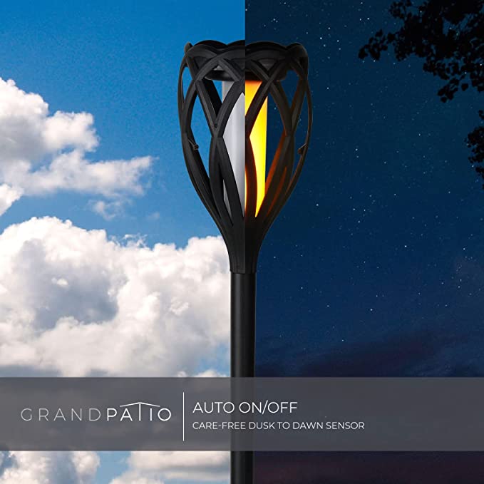GRAND PATIO Tall Solar Lights, Pathway Torch Lights with Flickering Flame 4-Pack LED, 3-in-1 Solar Landscape Lights