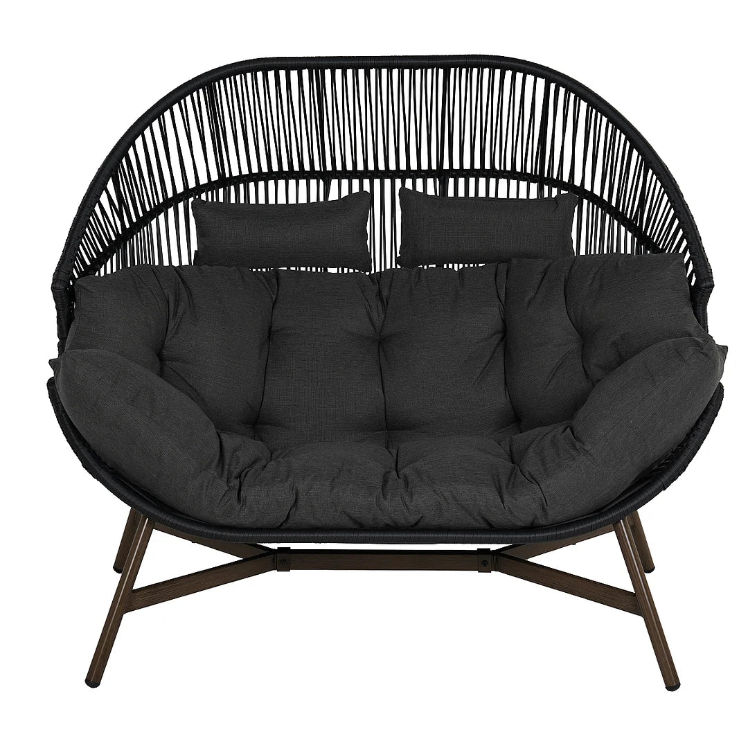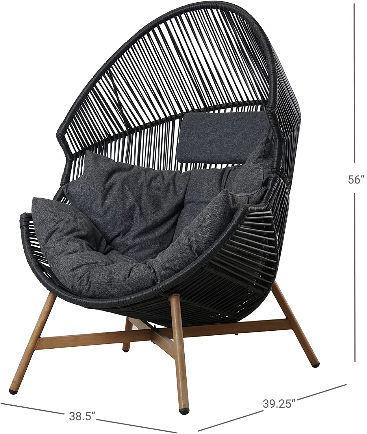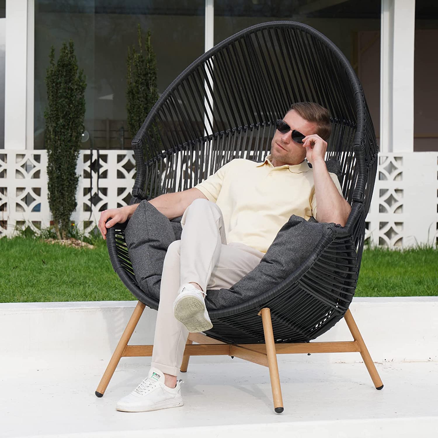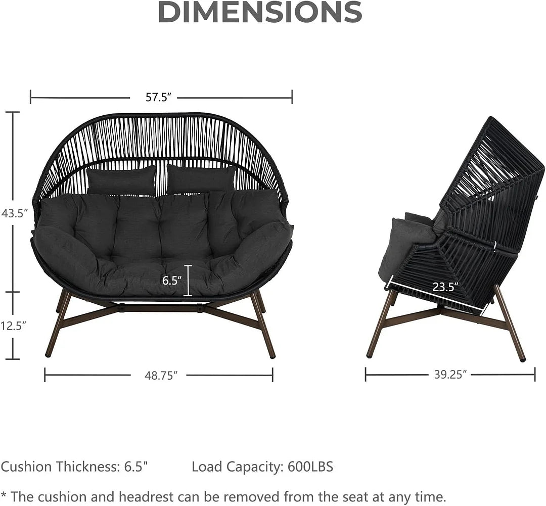 I’m very happy with this purchase. Shipping was great & product undamaged. Sitting in my new chair while writing this review. Put it together in under an hour. Can’t wait until it gets a little cooler so I can wrap up in a blanket & read or nap on my patio. Not too large or too tall, very sturdy. The perfect height & width. For not trying out this chair before buying, I can say it was one of my best furniture decisions. Cushions are full & material feels durable but not scratchy. My swinging egg papasan (purchased from Pier 1 ages ago) was my favorite chair, now this is my go-to seat. My cat enjoys it too & we will probably have to fight over this chair lol!! For now he is laying on me as I sit in the chair. We compromised 😆 If there is more than one (human) in the household I would suggest buying 2 🙂